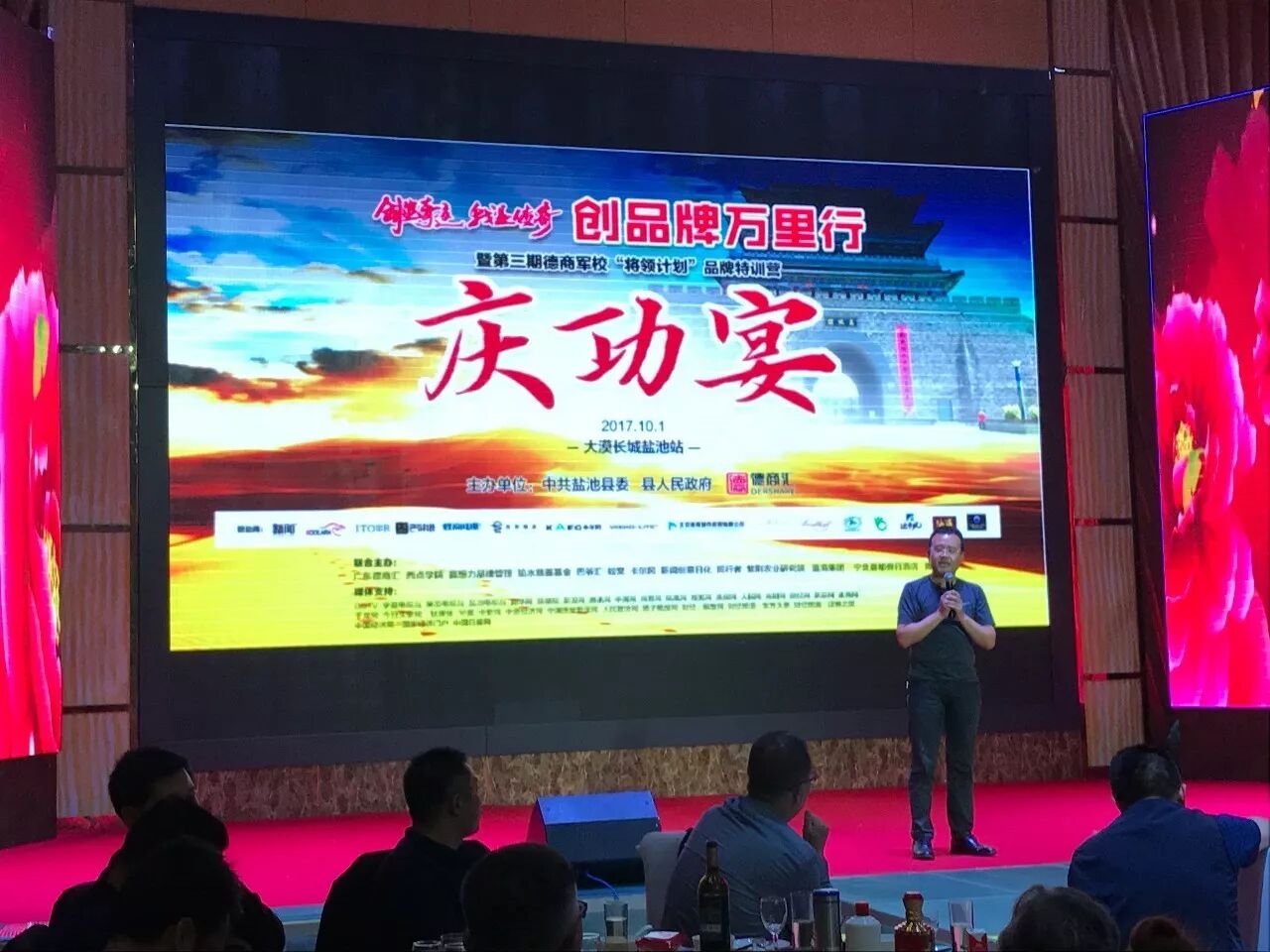 9月28日晚,在银川的宁北夏都假日酒店举行了品牌行的开营仪式。来自全国的品牌团队,品牌企业家以及德商汇品牌导师团、主席成员和盐池县政府代表参加了开营仪式。